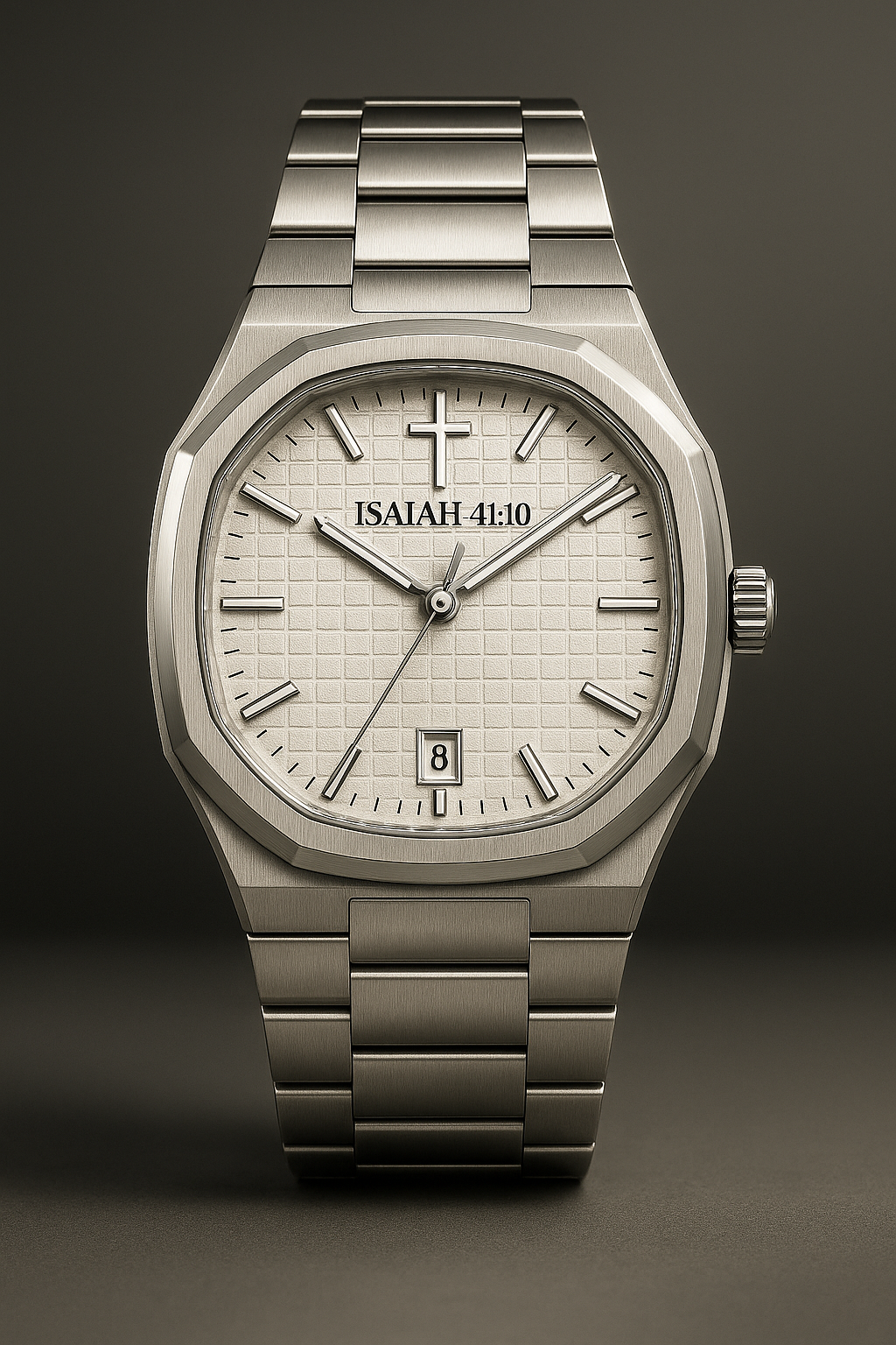The ELAD ISAIAH 41:10 watch is a unique blend of luxury craftsmanship and an eternal message of hope. This elegant timepiece is designed for those who wish to express their faith in a subtle yet stylish way.